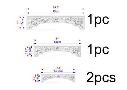 Custom order. Flowing Foliage Wooden Moulding. 60x3" -1pc; Vintage Corner Onlay With Acanthus Leaves, Set of 2pc - 14x11", material: multi-toned wood![]()  - Regular price