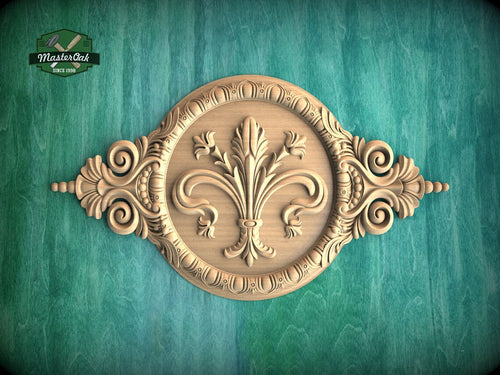 Custom order. Fleur-de-Lis Medallion Wood Onlay - Classic Central Applique Decor, set of 6pcs, Unpainted, Alder wood![]()  - Regular price