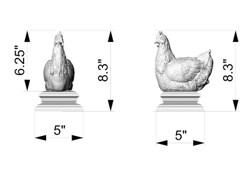 Custom order: newel post chicken, base 5×5, material — oak, for outdoor use, one piece.