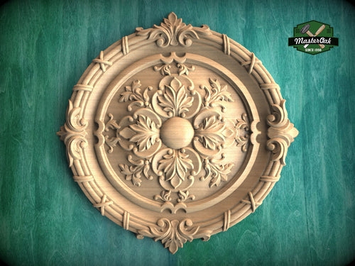 Intricately Carved Wooden Rosette with Classic Foliage Motifs, Unpainted, 1pc, Applique furniture decor DIY