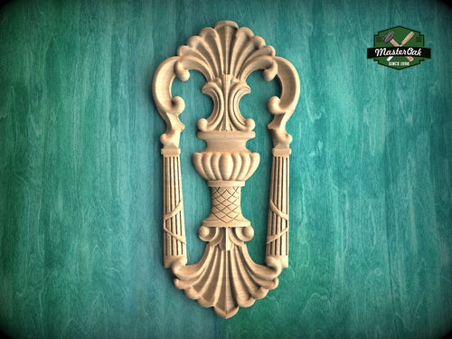 Floral carved drop onlay, Interior decor appliques, 1pc, Home Wall Embellishments, Furniture Carving, Wood Onlay