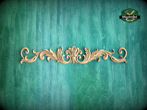Victorian Elegance: Carved Wooden Acanthus Onlay, 1 pc, Unpainted, decorative wood trim