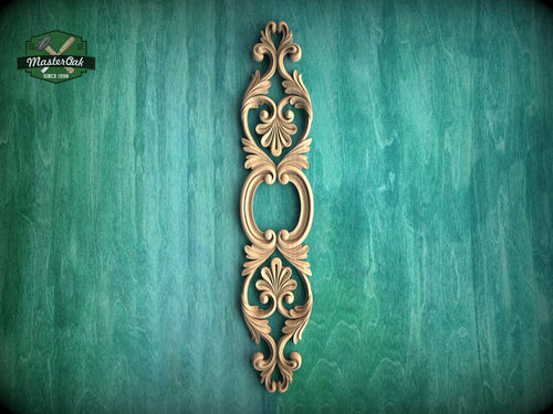 Decorative Wood Onlay Strip, Floral Scrollwork Applique, 1pc, Unpainted, vertical decor, carved decoration of wood, wooden onlay
