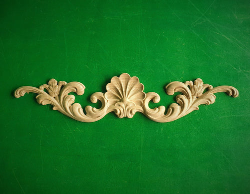 Shell decor, Wood Carved Applique Onlay, 1pc, Home Wall Embellishments, Furniture Carving