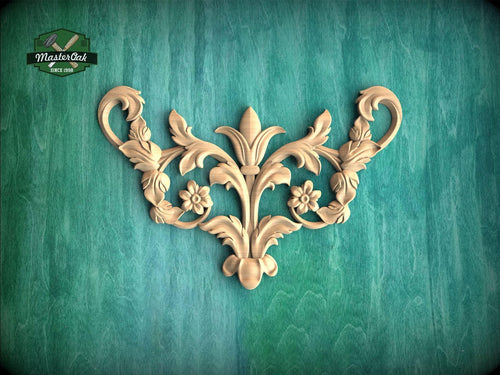 Floral Scroll Wood Applique — Decorative Carving for Furniture
