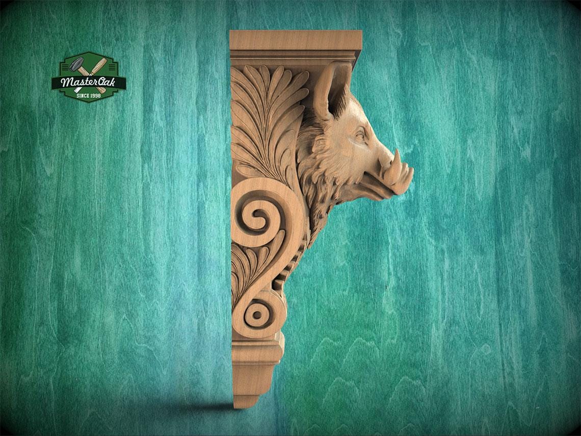 The wild-boar head creates a bold focal point, while the acanthus curves and scroll details keep the silhouette balanced and refined. This piece works beautifully in kitchens, bars, mantels, libraries, hunting-style interiors, or any space that welcomes character and texture.