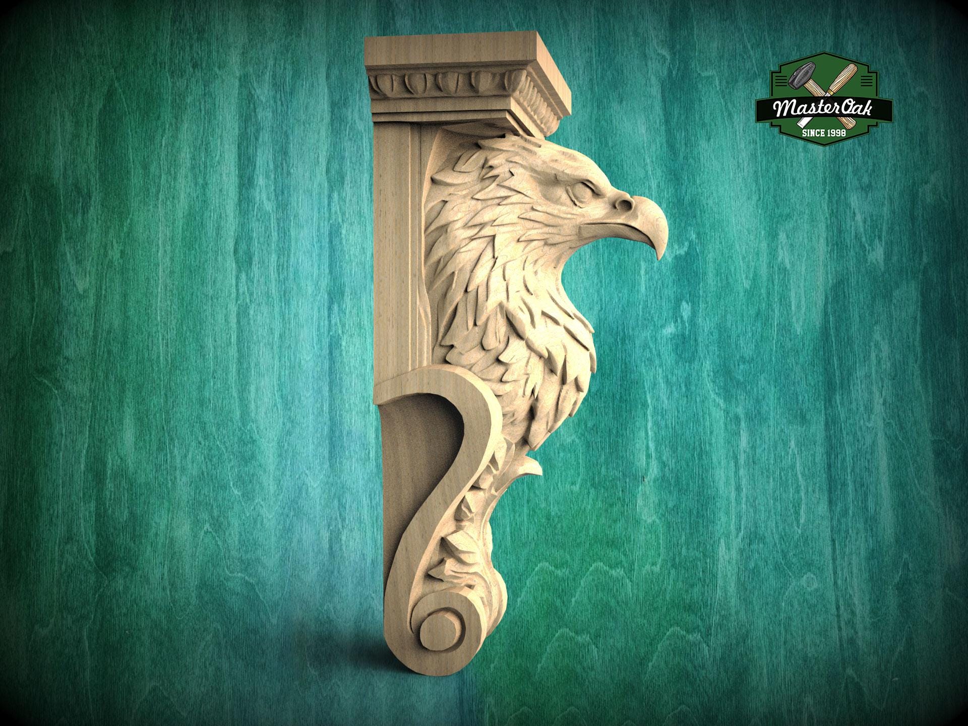 Carved Eagle Corbel, Wooden Bracket, Classical Wall Support, Architectural Decor