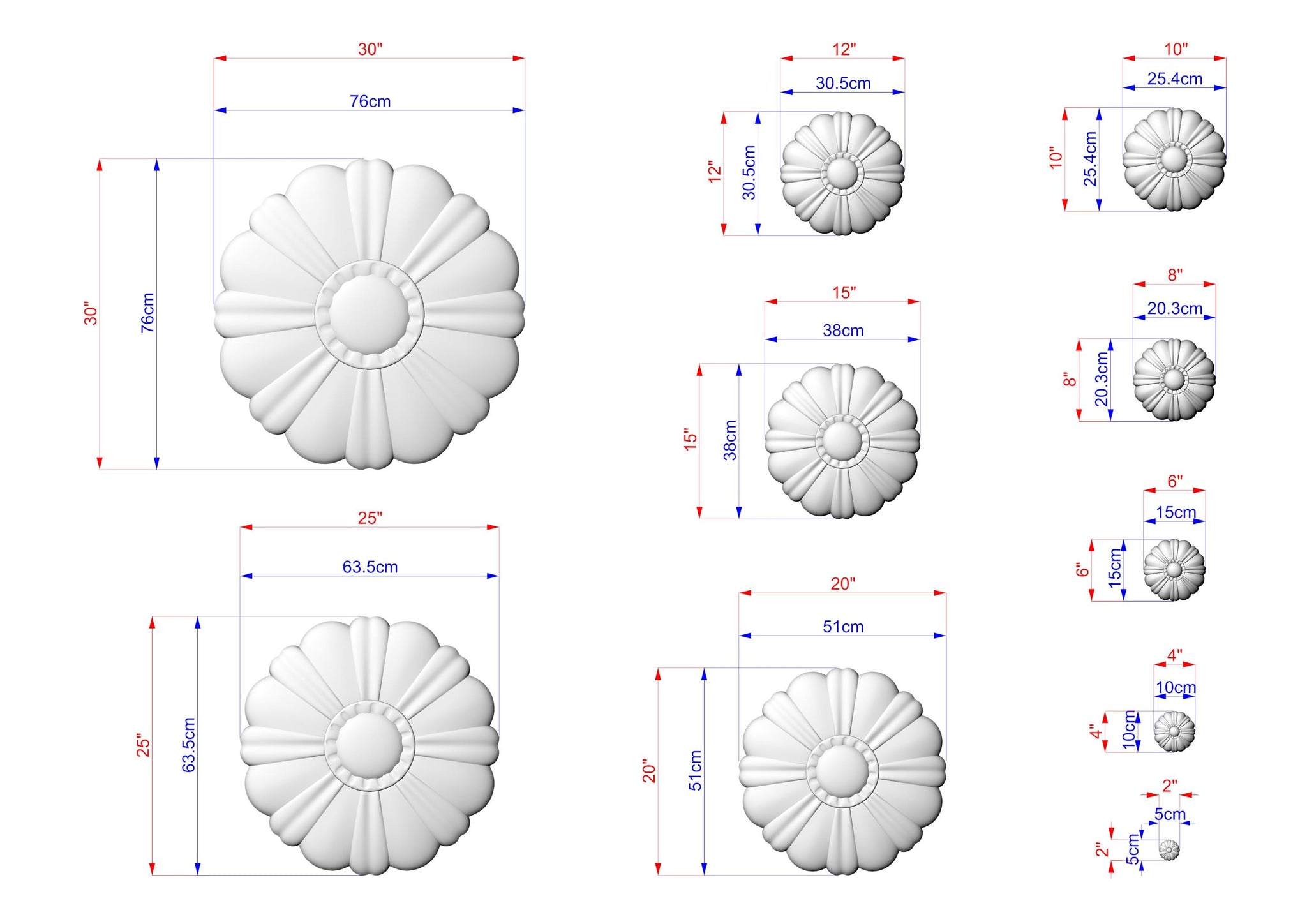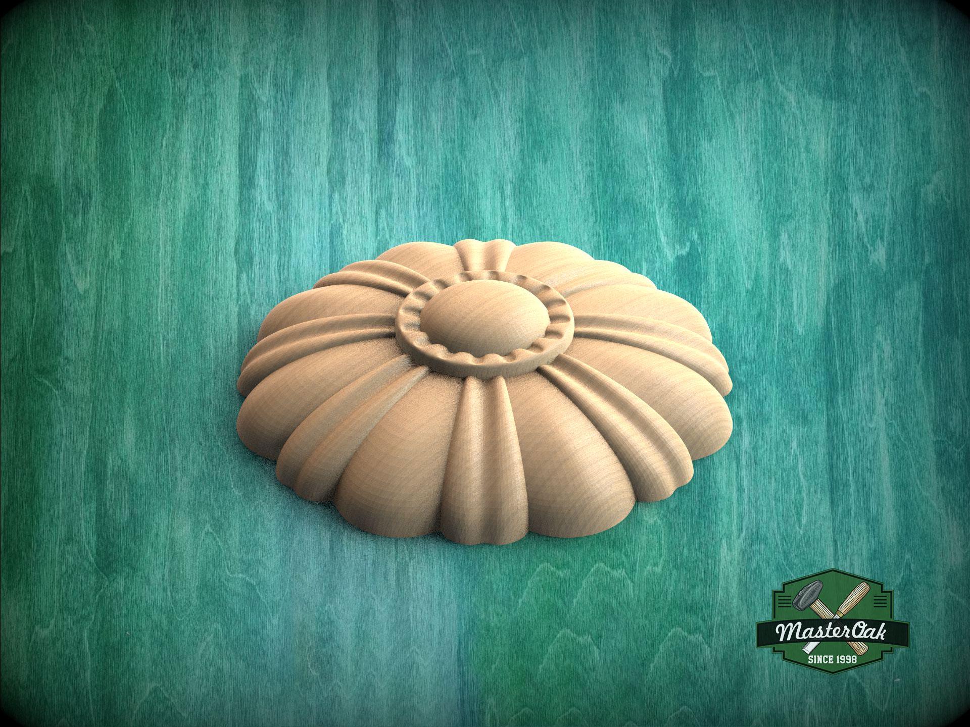Quiet symmetry in a floral form. A carved round rosette with soft petals and calm depth for ceilings, doors, or panels.