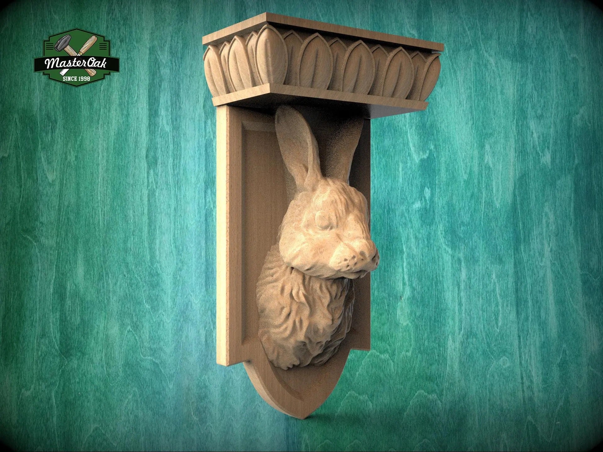Custom order. Rustic Bunny Shelf Support, Bunny Head Corbel, Hight-10.6"; Width - 6"; Depth - 3.2", 9pcs, Oak wood