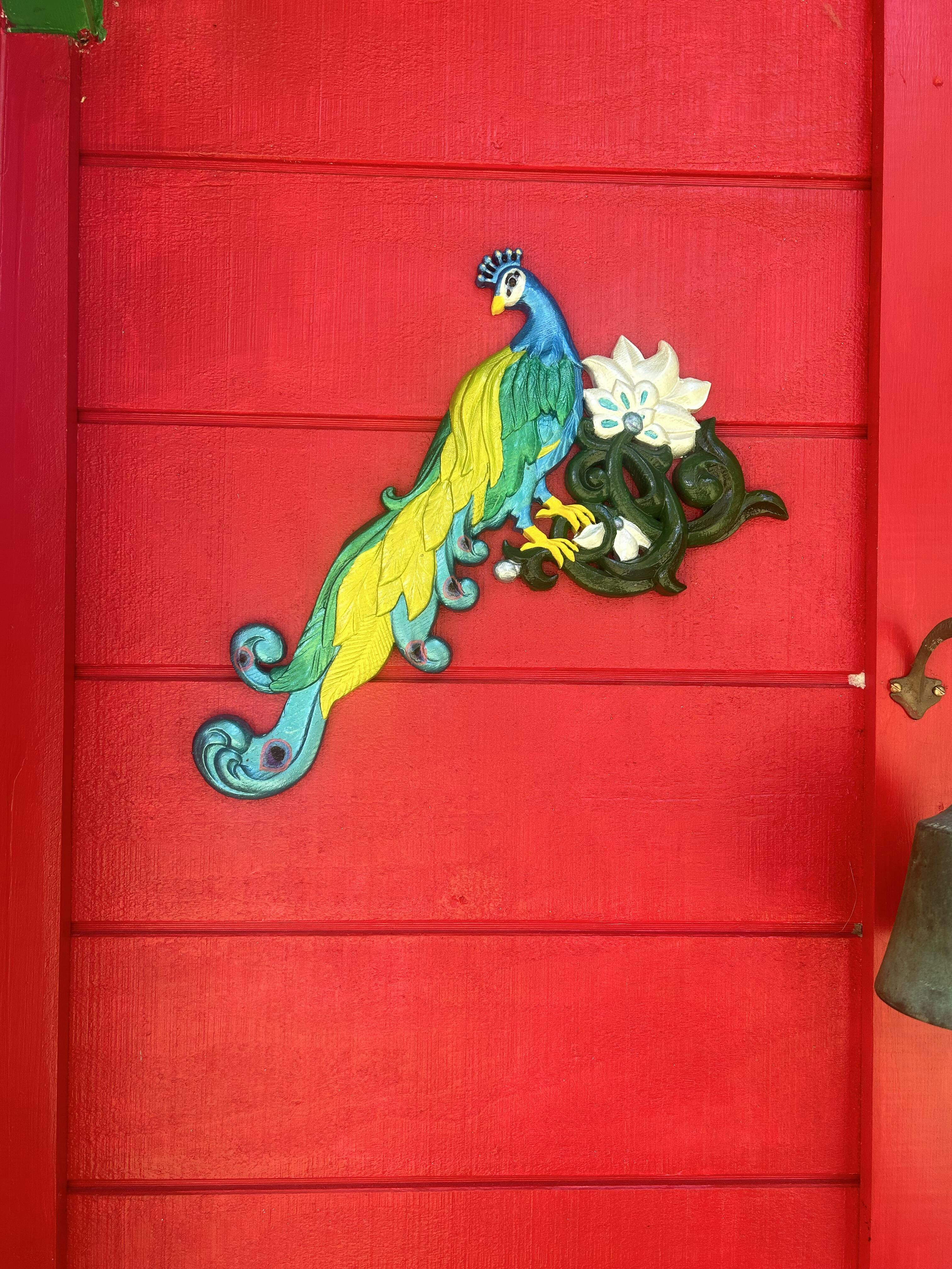 Custom order. Set of a pair of peacocks 20x12" and Sunburst Elegance wooden rosette 15x15", multi-toned wood with water-resistant glue