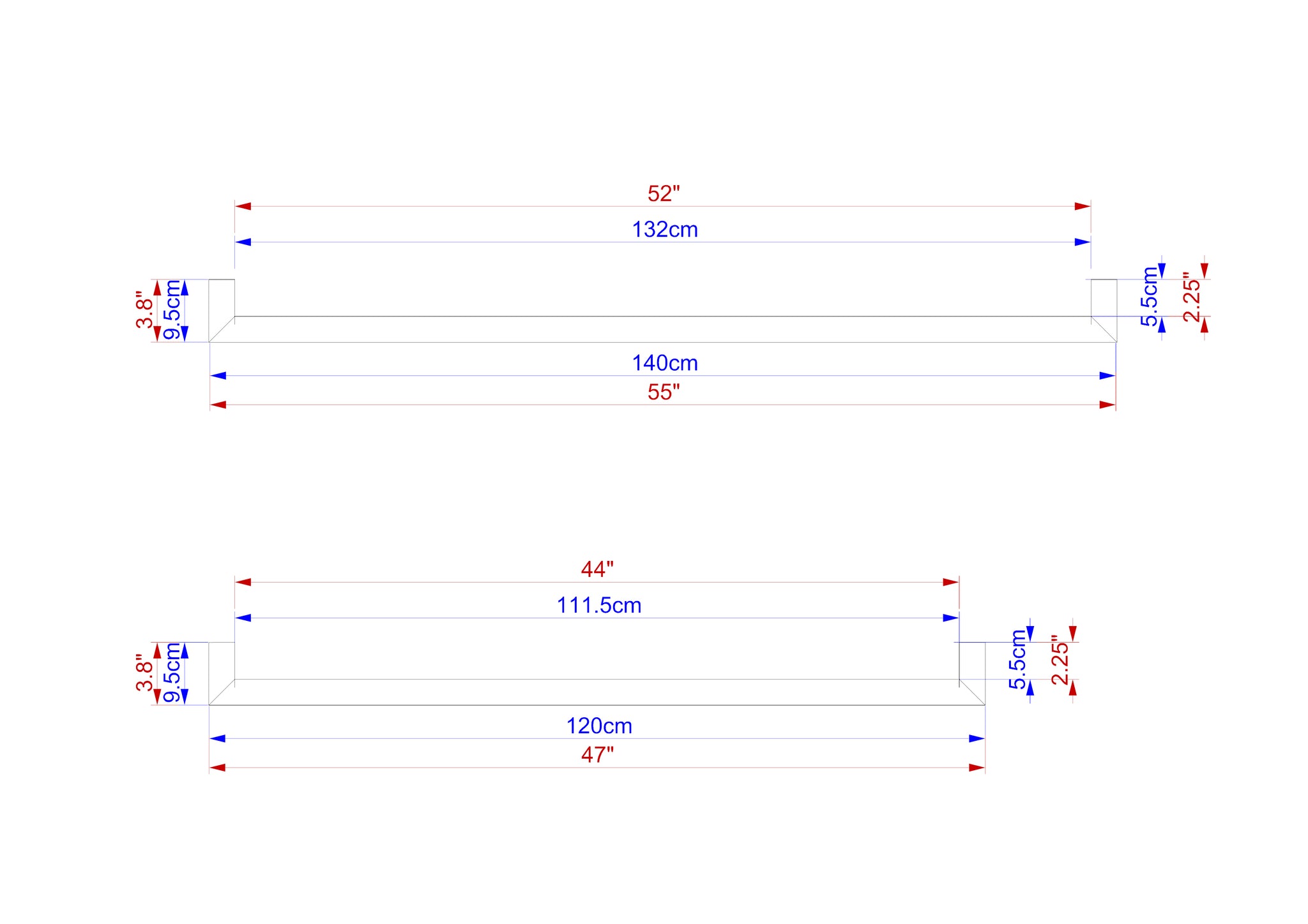 First part - Inside Length: 44"; Inside Depth: 2.25"