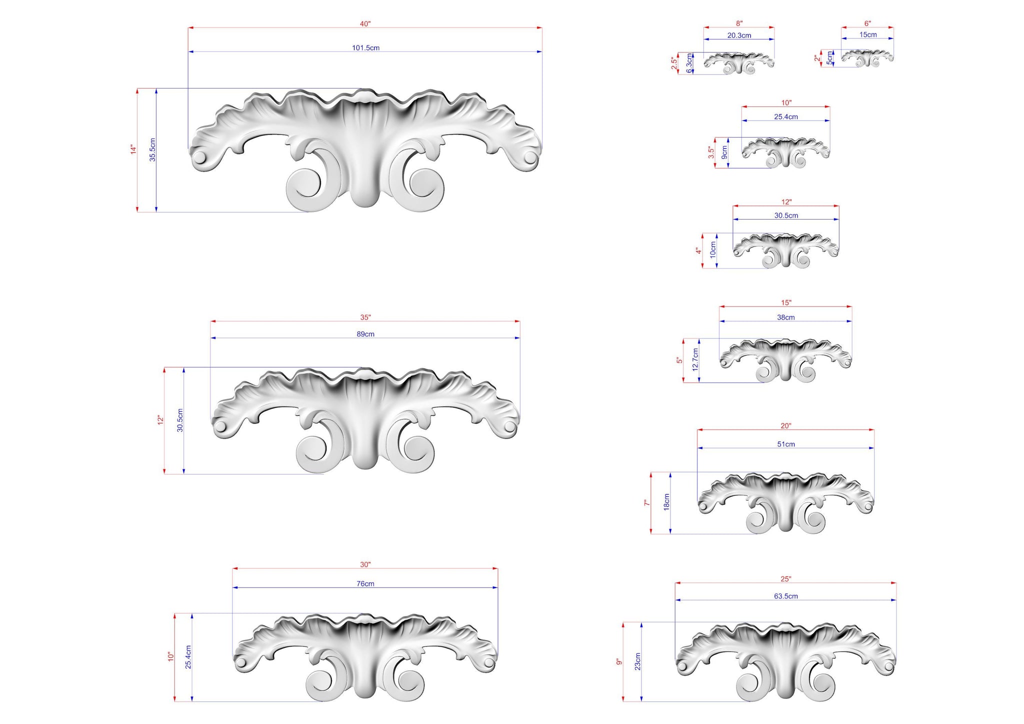 A decorative element shaped like flowing leaf drapery with curling scrolls below. Perfect for mirrors, doors, or wall panels, it brings softness and rhythm into interiors.