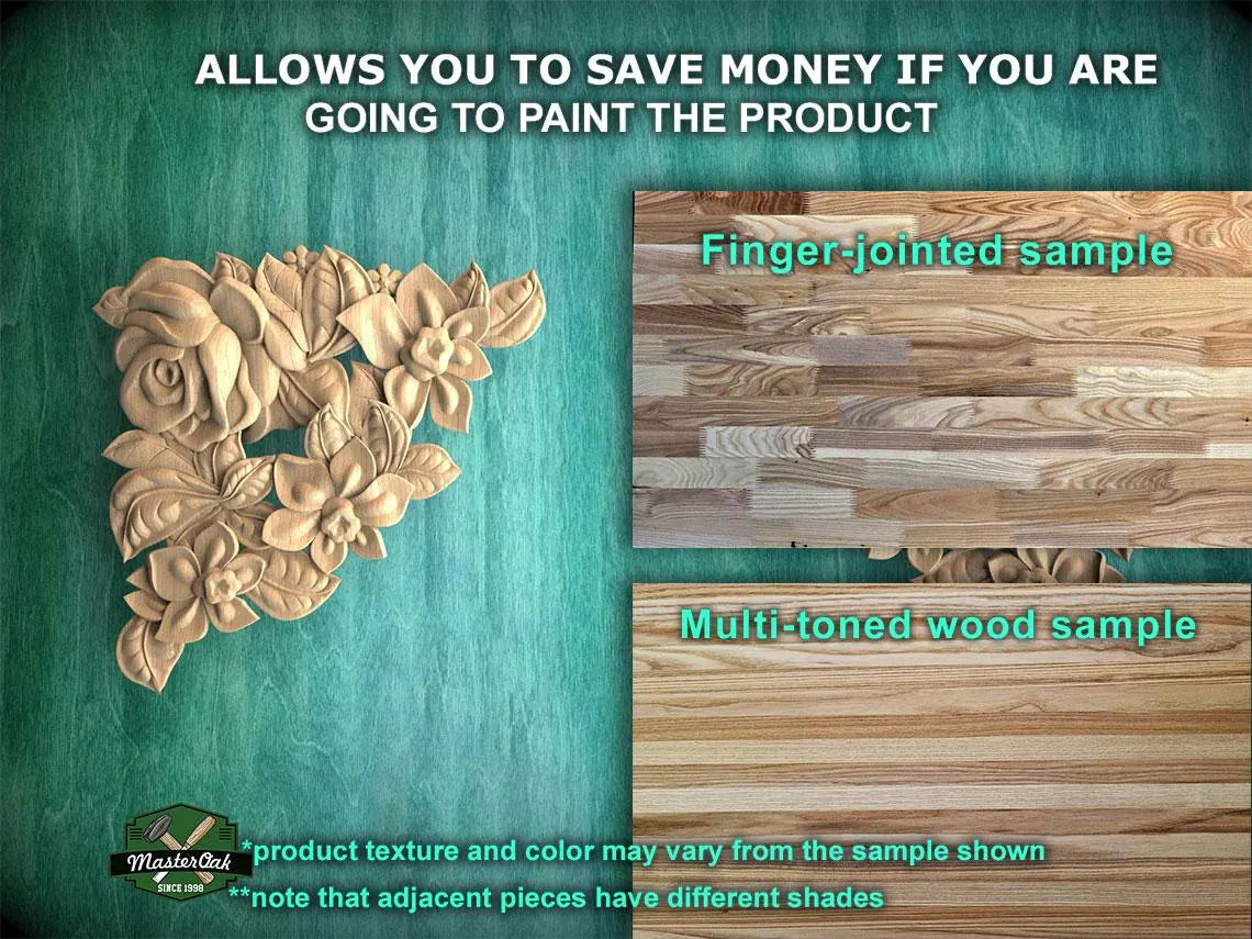 Flower  style hardwood corner Onlays, Set of 2pc, decorative wood trim