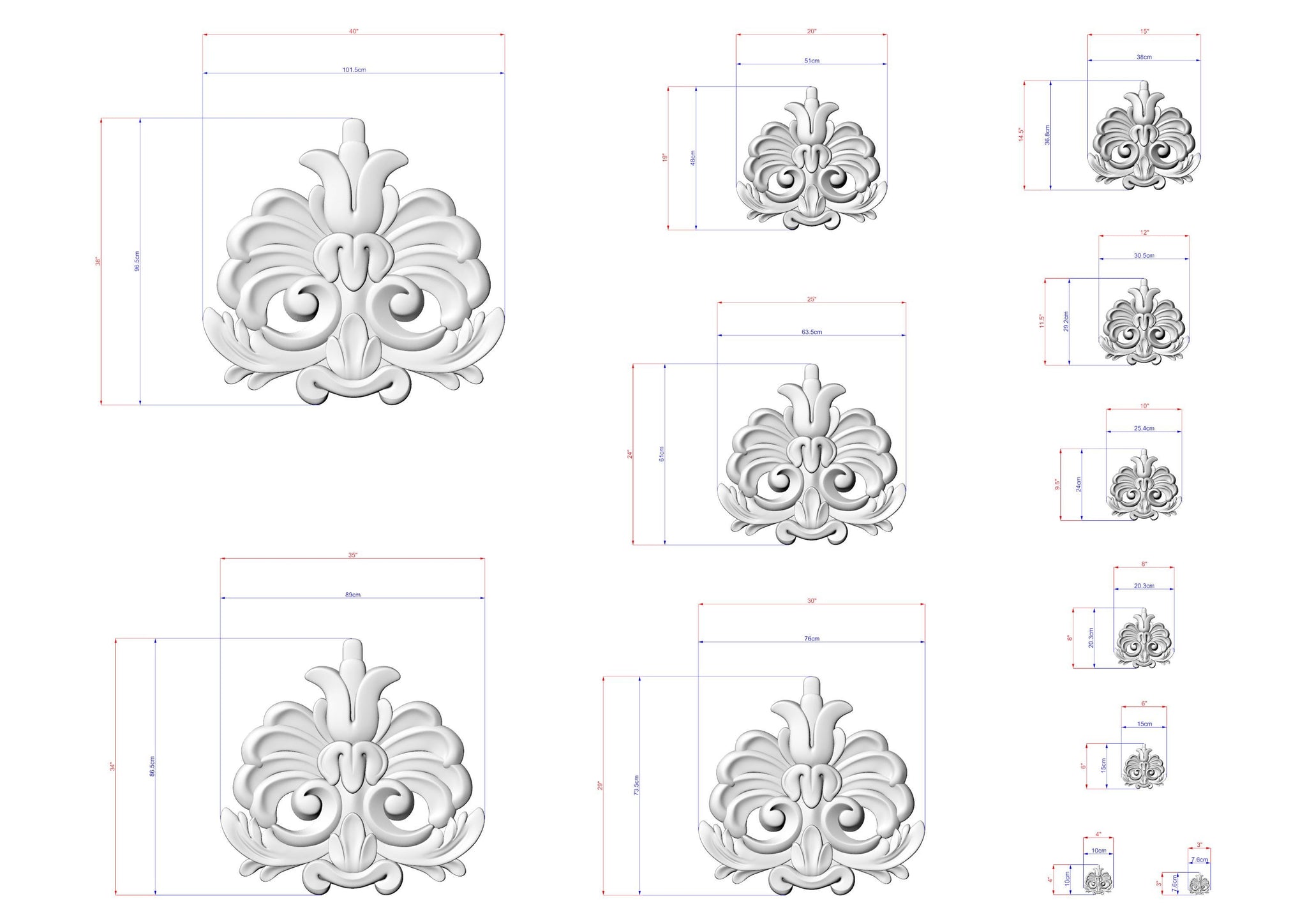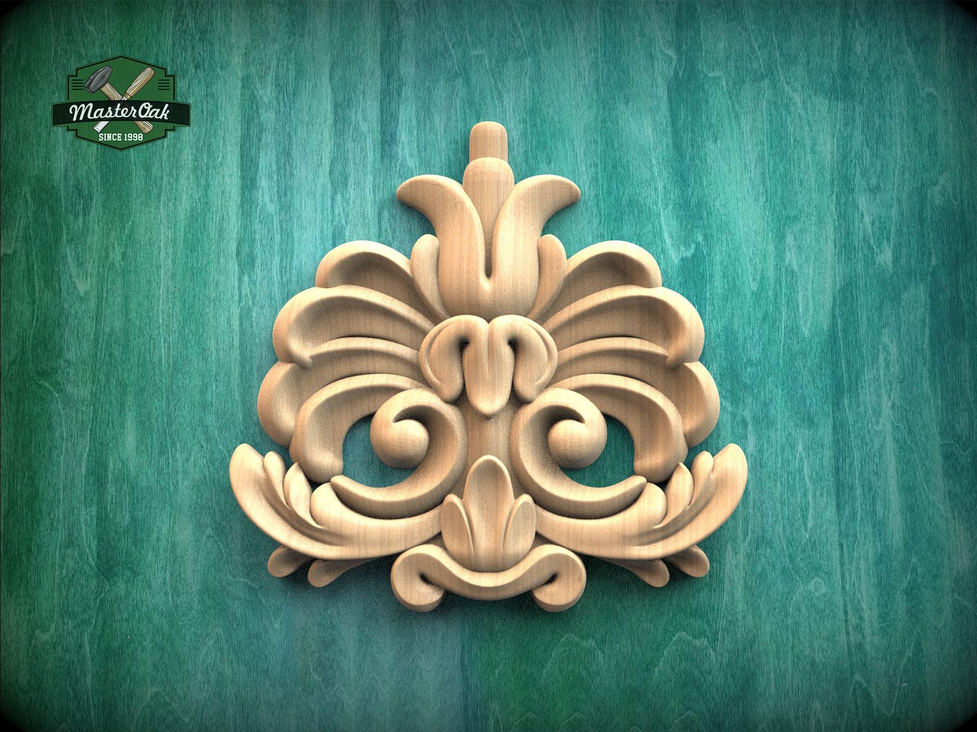 This carving combines flowing scrolls with stylized leaf shapes. The composition creates a balanced and elegant accent. Its compact size allows versatile placement in interiors. Ideal for furniture panels, doors, or wall décor.