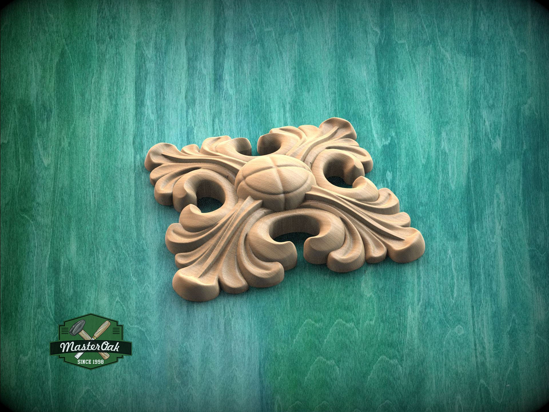 ★★★ A finely carved acanthus ornament in a cross-shaped composition. Its fluent lines and balanced relief create a sense of classical order and motion. Perfect as a central accent for doors, furniture panels, or wall décor, this piece blends refinement and structure.